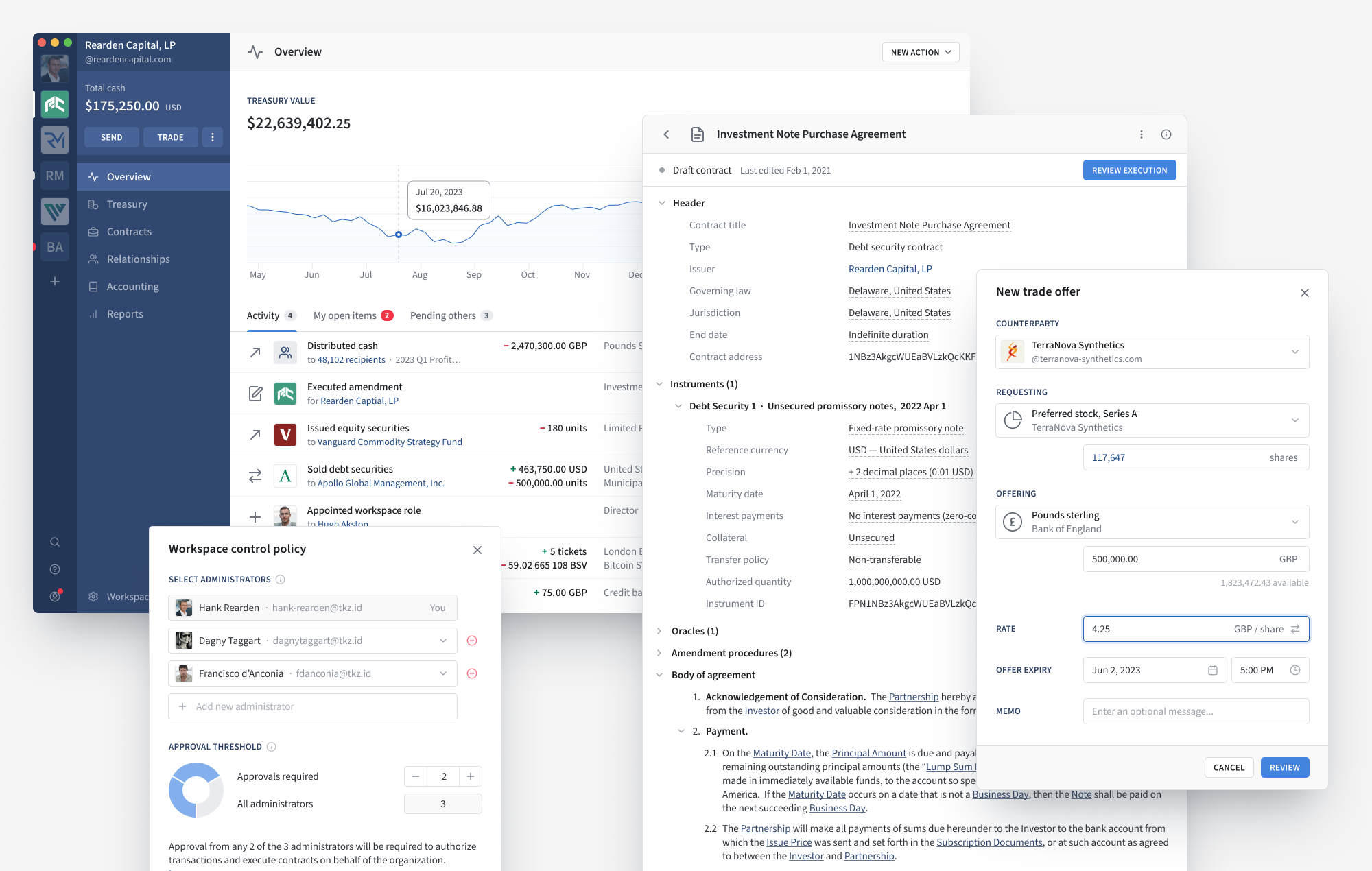 A blockchain-based smart contracting platform for issuing, managing and trading digital assets. Featuring non-custodial, multi-signature treasury control, decentralized atomic swaps, and a powerful smart contract editor with support for numerous asset classes.